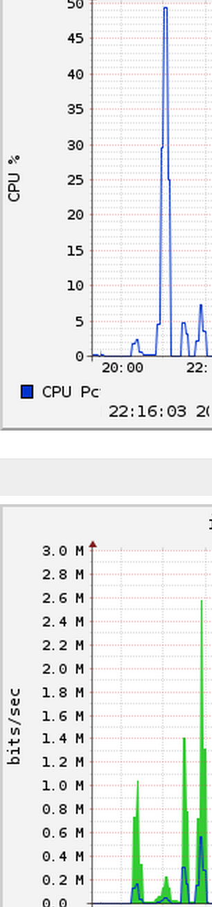 Please also compare these graphs, the upper is CPU usage, the lower network throughput: